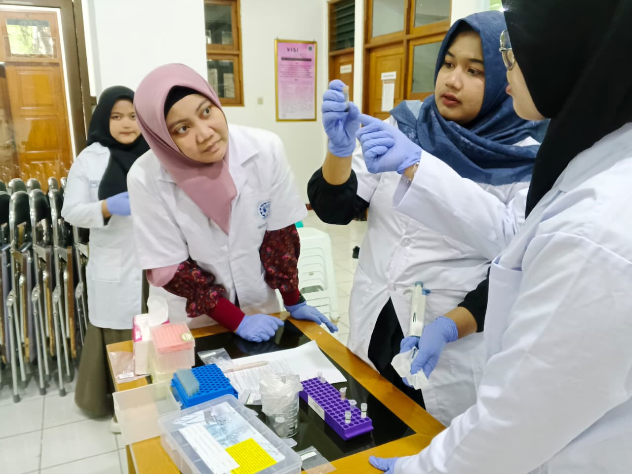 Rangkaian kegiatan dimulai dengan sesi pemaparan materi mengenai konsep dasar genomik dan bioinformatika yang disampaikan oleh para narasumber. Materi yang diberikan bertujuan untuk memberikan pemahaman awal terkait pentingnya analisis data genomik dalam perkembangan ilmu farmasi modern. Setelah sesi materi, peserta diberikan waktu istirahat sebelum melanjutkan ke sesi praktik langsung di laboratorium.