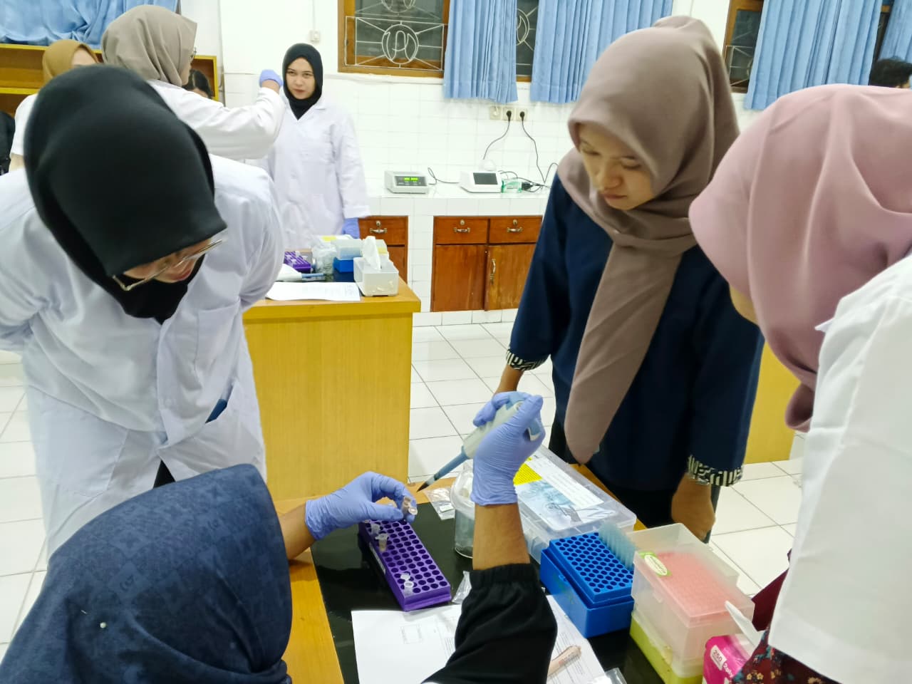 Pada sesi praktik, peserta melakukan hands-on analytics terhadap data genomik di Laboratorium Farmakogenomik. Kegiatan ini dipandu langsung oleh Dr. apt. Haafizah Dania, M.Sc bersama tim dari PT Kairos, sehingga peserta tidak hanya memahami teori, tetapi juga mampu mengaplikasikan ilmu yang telah diperoleh secara langsung. Antusiasme peserta terlihat dari keaktifan mereka selama mengikuti praktik serta diskusi yang berlangsung interaktif.