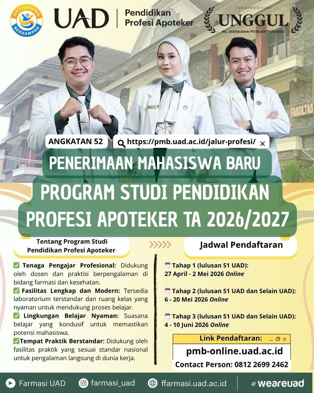Informasi Tentang Penerimaan Mahasiswa Baru Program Studi Pendidikan Profesi Apoteker